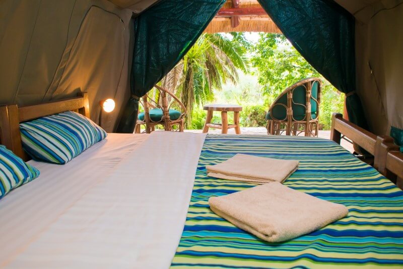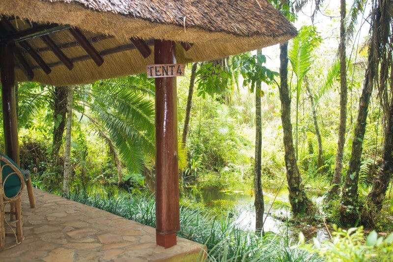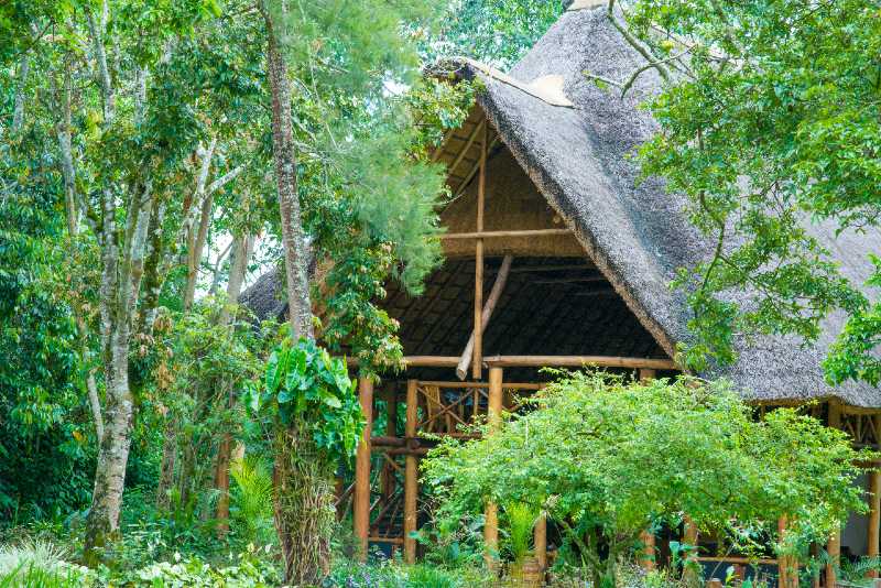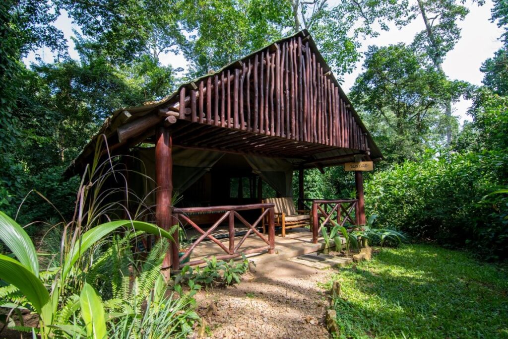 Ukryty w tropikalnym lesie na skraju Parku Narodowego Kibale, ten eco‑camp oferuje zakwaterowanie w przestronnych safari tentach i domkach o rustykalnym, naturalnym wystroju. Wokół rozciąga się soczysta zieleń lasu deszczowego, a z tarasu restauracji można obserwować ptaki i małpy. Wieczorami w powietrzu unosi się zapach ogniska, a w oddali słychać dźwięki dzikiej natury.