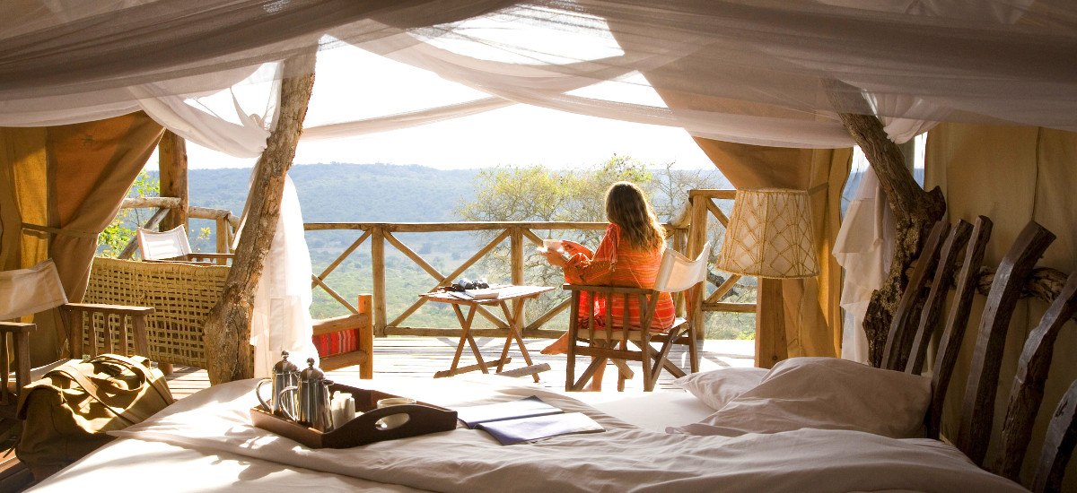 Luksusowy eco‑lodge usytuowany na wzgórzu z rozległym widokiem na sawannę. Ekskluzywne namioty safari są pięknie urządzone i wyposażone w otwarte łazienki, dzięki czemu można podziwiać przyrodę również podczas kąpieli. Na gości czeka basen infinity, wyśmienita kuchnia i przytulny salon z biblioteką. Miejsce jest znane z organizowania unikatowych safari konnych.